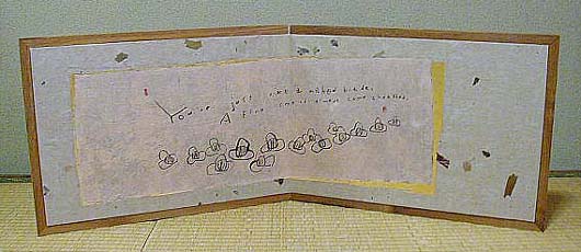 この作品は工山が作った仮表具の屏風です。 裏は未造作です。戦前の和紙を使用。