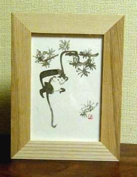 和紙葉書に淡墨(仙がいさんの猿より)