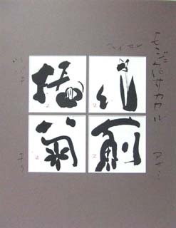 ![]() 椿・水仙・菊・薊 各々の漢字に花を咲かせて 作品寸1点法約120×120mm 18900円 |